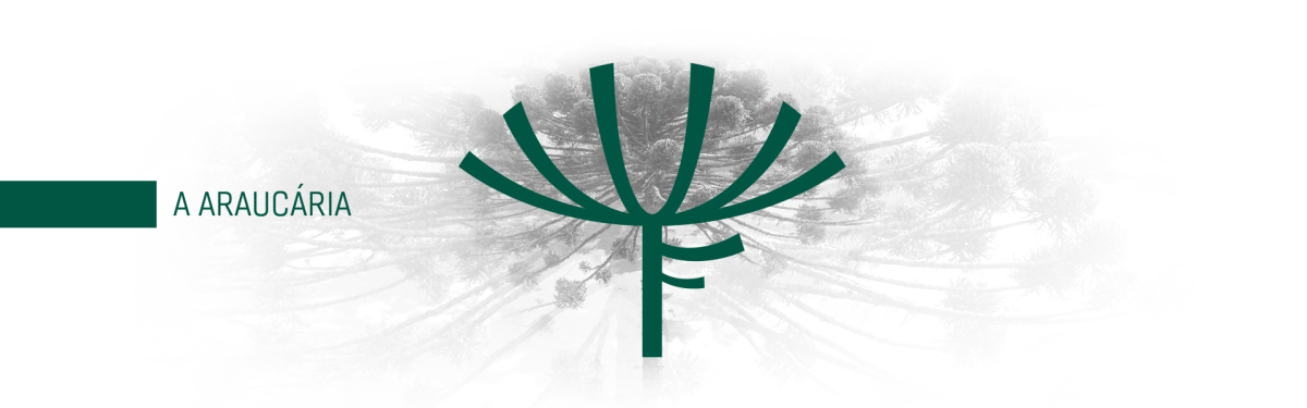 A araucária é um ícone paranaense. Majestosa e imponente, com seus galhos dispostos de maneira raiada, essa árvore situa-se no topo do novo escudo.